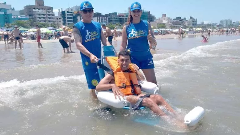 Pessoas com dificuldade de locomoção podem tomar banho de mar