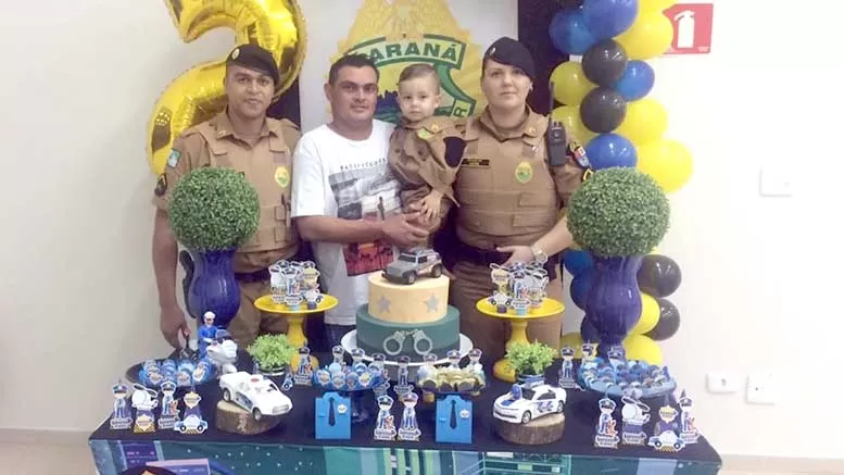 Com o tema da “Polícia Militar”, neste sábado (11 de janeiro), por volta das 18h, uma equipe deslocou até o aniversário de 02 anos do Lorenzo, que ficou muito contente com a chegada dos Policiais.