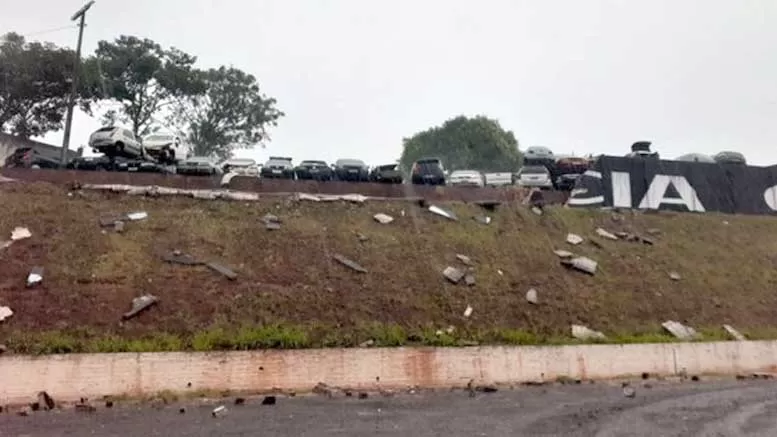 Na tarde desta segunda-feira (06), por volta das 15h30min, durante um forte temporal, o muro da Delegacia de Cruzeiro do Oeste/PR, que faz fundo com a Feira do Produtor, desabou parcialmente, deixando os carros apreendidos no pátio expostos.