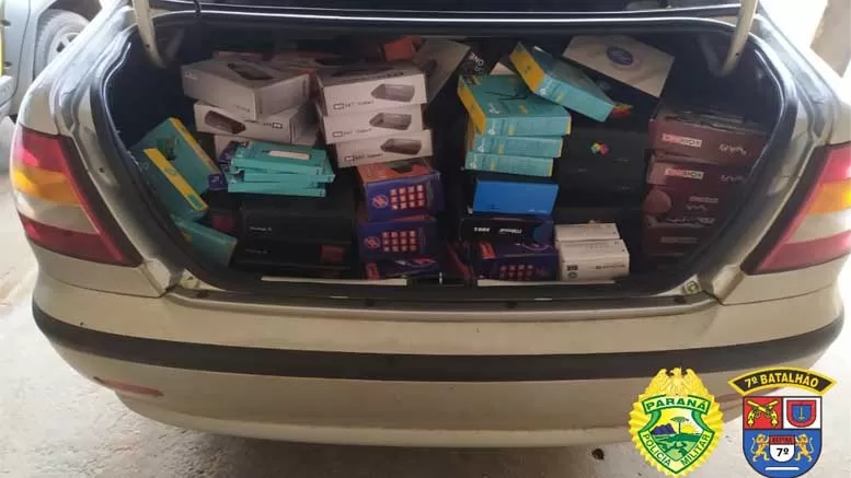 Por fim, em uma ação da Operação Metrópolis, os policiais rodoviários abordaram um GM/Vectra e encontraram no interior 75 celulares contrabandeados. O motorista não foi localizado e o carro e os eletrônicos foram apreendidos e encaminhados à Receita Estadual de Maringá para as medidas necessárias.