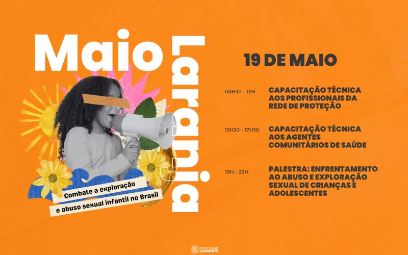 Celebramos neste mês o Maio Laranja, uma referência ao Dia Nacional de Combate ao Abuso e à Exploração Sexual Infantil, o 18 de Maio. Com o objetivo de debater o assunto e levar informação aos profissionais que atuam na proteção deste público e na promoção da saúde, bem como à comunidade em geral, a Prefeitura – por meio das secretarias municipais da Mulher, de Assistência Social, de Educação e de Saúde – elaborou uma programação especial, com participação gratuita.