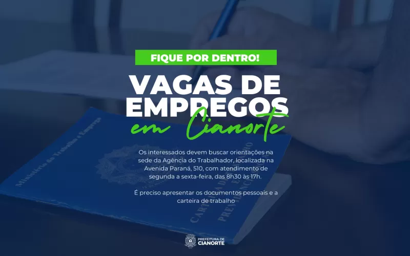 AGÊNCIA DO TRABALHADOR DE CIANORTE TEM 553 VAGAS DE EMPREGO