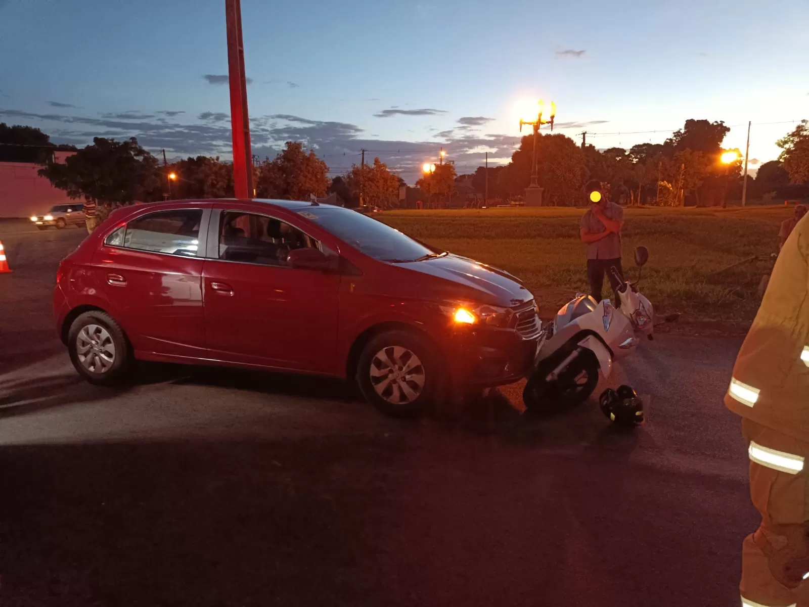 No início da noite dessa quinta-feira (2), por volta das 19h, policiais militares deslocaram até a Praça Gastão Vidigal, em Cianorte, para dar atendimento de acidente de trânsito envolvendo um veículo Chevrolet Ônix, de cor vermelha, e uma motoneta Honda Biz, de cor branca.