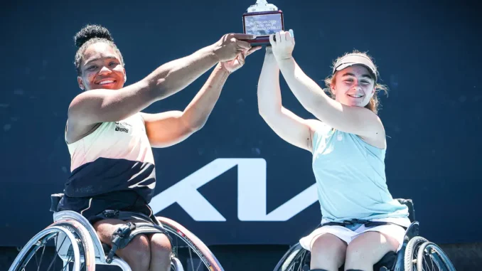 Os jovens mineiros Vitória Miranda e Luiz Calixto, ambos de 17 anos, fizeram história ao conquistarem títulos na categoria júnior do tênis em cadeira de rodas no Aberto da Austrália, nesta sexta-feira (24), em Melbourne. Vitória, número 1 do mundo no ranking júnior, levou o troféu ao lado da belga Luna Gryp, enquanto Luiz, estreante em Grand Slam, venceu a final de duplas com o norte-americano Charlie Cooper.