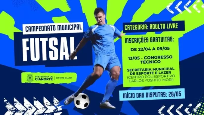 As inscrições para a edição 2025 do Campeonato Municipal de Futsal de Cianorte estarão abertas a partir da próxima terça-feira (22). As equipes interessadas poderão se inscrever gratuitamente até o dia 9 de maio, presencialmente na Secretaria Municipal de Esporte e Lazer (SMEL), no Centro Poliesportivo Carlos Yoshito Mori.