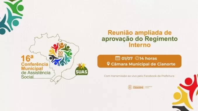Na próxima terça-feira, 1º de julho, Cianorte dará um importante passo rumo à realização da 16ª Conferência Municipal de Assistência Social. O Conselho Municipal de Assistência Social promoverá uma reunião ampliada para leitura e aprovação do Regimento Interno, documento essencial para nortear os debates e decisões do evento.