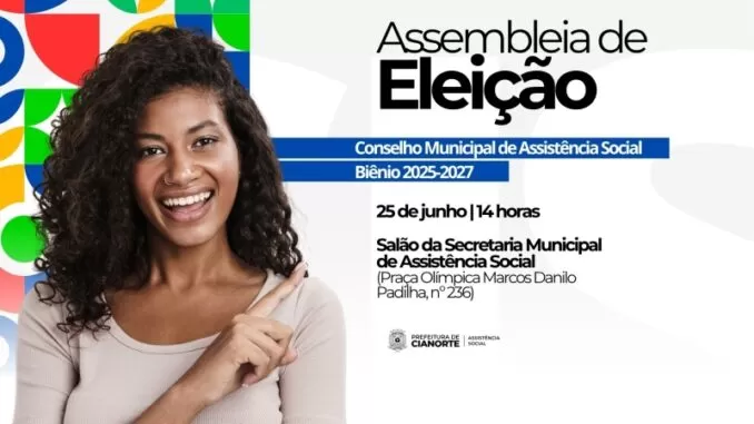 Cianorte realiza nesta quarta-feira (25), às 14h, a Assembleia de Eleição da nova composição do Conselho Municipal de Assistência Social (CMAS). O evento acontecerá no salão da Secretaria Municipal de Assistência Social, na Praça Olímpica Marcos Danilo Padilha, nº 236. A convocação é voltada à sociedade civil, que terá papel decisivo na escolha dos novos representantes para o biênio 2025-2027.