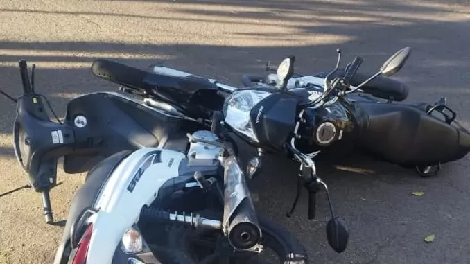 As motocicletas ficaram danificadas, caídas no asfalto. E pior — os condutores também não escaparam ilesos. Feridos, ambos precisaram de atendimento imediato.