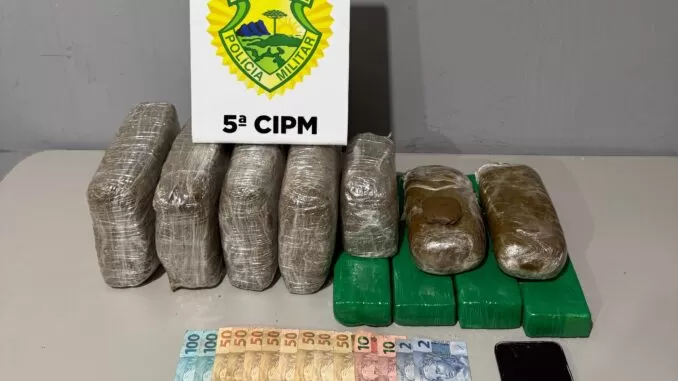 Além das drogas, uma quantia em dinheiro. Valor não informado. Mas o suficiente para indicar que o transporte não era por acaso… era negócio. Tráfico.