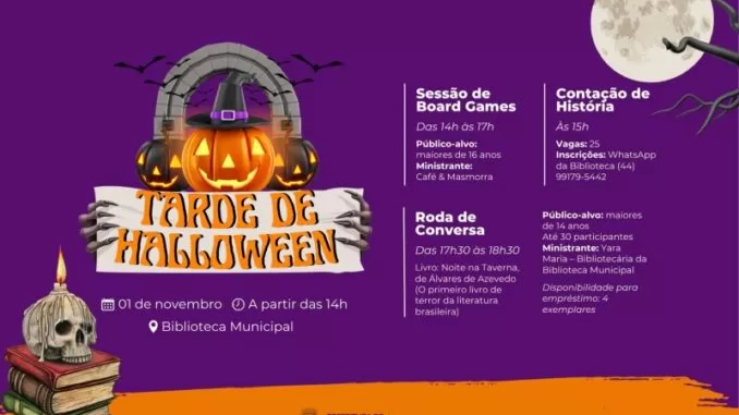 Evento em Cianorte terá contação de histórias, jogos de tabuleiro e debate sobre literatura de terror no dia 1º de novembro