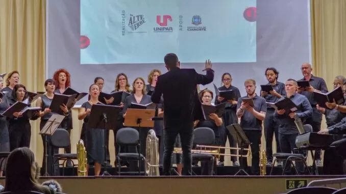 Na última sexta-feira (12), o Teatro Cândido Garcia, no campus da Unipar em Cianorte, foi tomado pela emoção e beleza do “Especial de Natal” apresentado pelo Coral Das Alte Erbe. A apresentação gratuita integrou a programação oficial do “Encantos de Natal”, promovido pela Prefeitura de Cianorte com apoio da Unipar.
