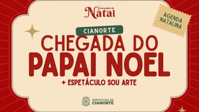A magia do Natal toma conta de Cianorte nesta quarta-feira, 3 de dezembro, com a chegada oficial do Papai Noel, que promete encantar crianças e adultos na Praça da República, a partir das 19h30. A abertura dos Encantos de Natal 2025 será marcada por um espetáculo cultural gratuito e diversas atrações para toda a família.