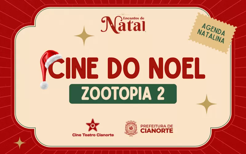 Quem mora em Cianorte e região já pode se programar: o “Cine do Noel” vai exibir gratuitamente o aguardado Zootopia 2, nos dias 15 e 16 de dezembro, às 19h, no Cine Teatro Cianorte. A ação integra o calendário especial do “Encantos de Natal” da Prefeitura e promete atrair famílias para momentos de lazer e cultura em clima natalino.