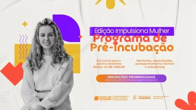 Mulheres empreendedoras de Cianorte têm até o dia 19 de janeiro para se inscrever no programa de pré-incubação Impulsiona Mulher, que oferece bolsas mensais de R$ 1.000,00, durante quatro meses, para apoiar o desenvolvimento de ideias inovadoras com potencial de negócio.